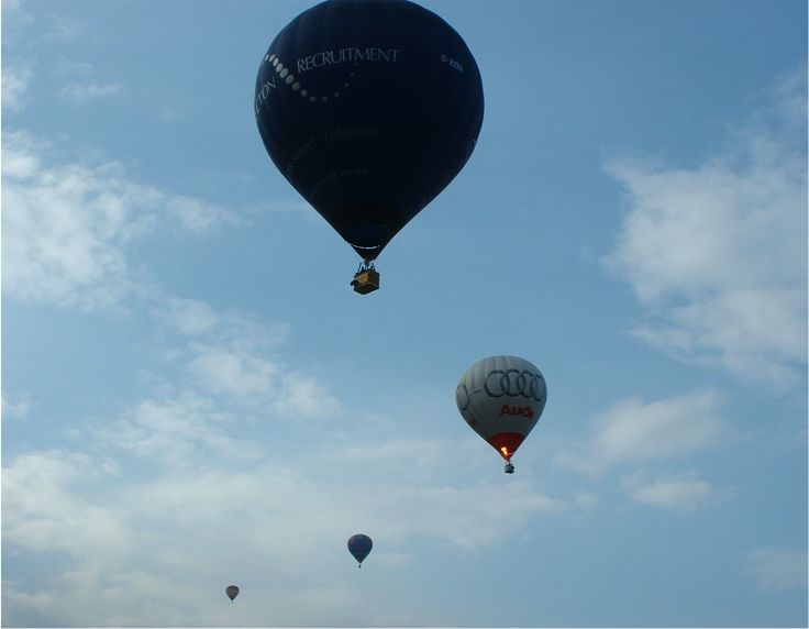 Northampton Balloon Festival 2003The 2003 Northampton Balloon Festival was held on 15,16,17 August 2003 at the Northampton racecourse. These pictures were taken on Sunday 17th August at around 6pm, the last flight of the festival. Due to the high level of wind, no unusually shaped balloons took off, only the standard teardrop shaped ones. Click on the small images for a bigger version of the image.