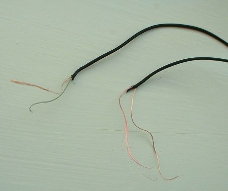 These wires are coated and you will need to remove the coating before continuing. This is important or the mod will not work. You can do this by either scraping it off, or VERY CAREFULLY burning it off with a match or lighter.